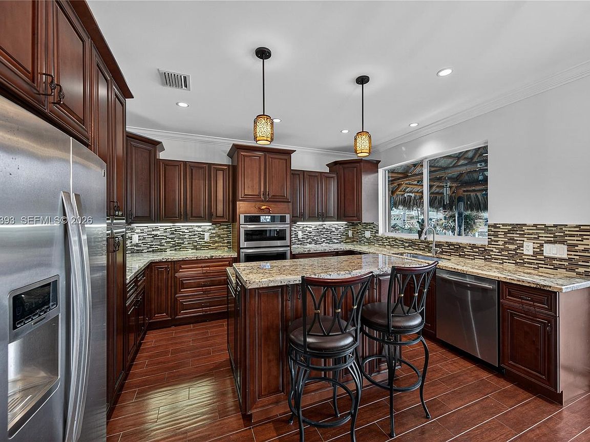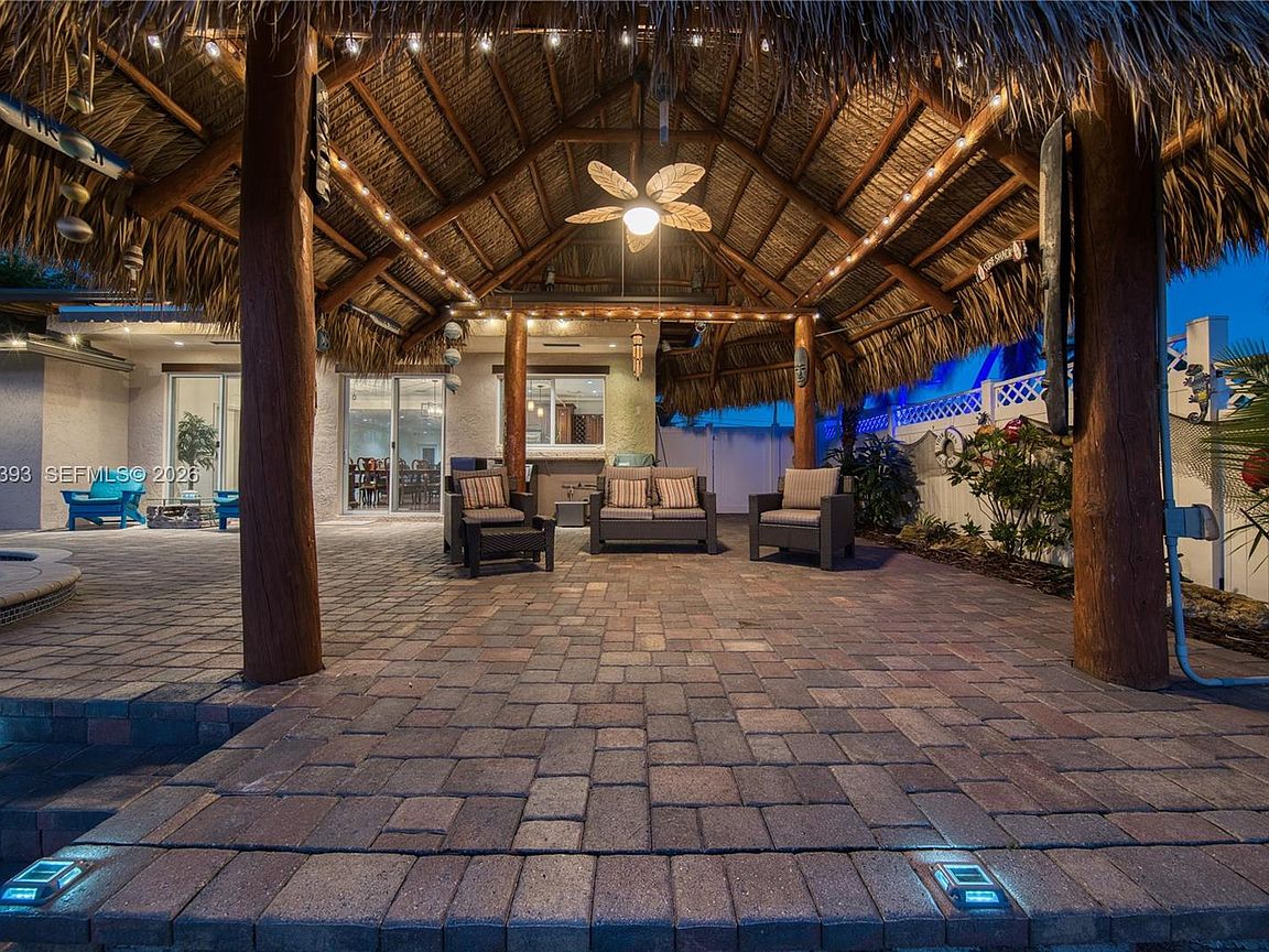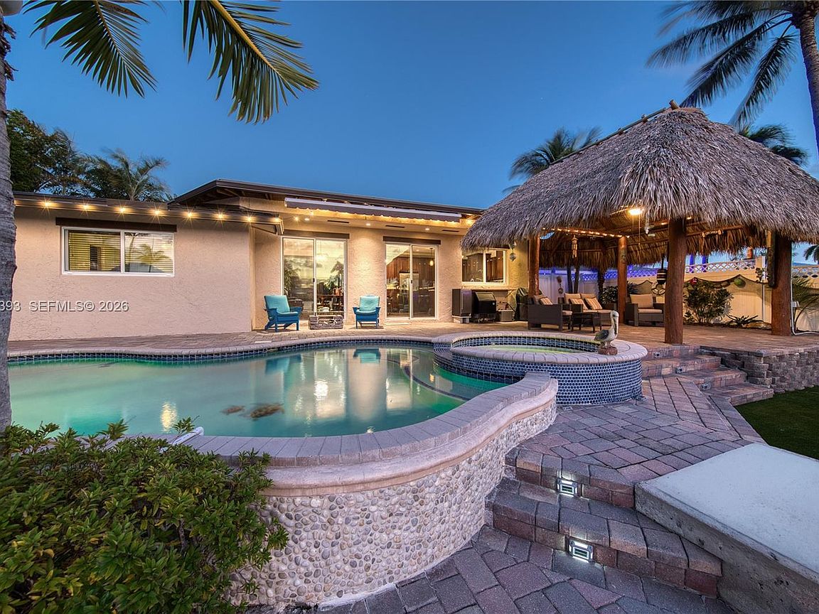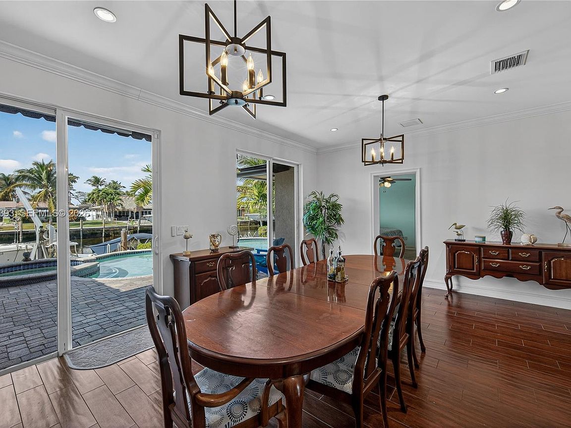 FOR SALE ONLY, NOT for Rent, NO INVESTORS, Exceptional wide-canal waterfront residence located at the end of a cul-de-sac in Garden Isles, offering breathtaking water views and outstanding ocean access. This beautifully maintained property features extensive upgrades throughout. Recent improvements include a 2025 metal roof with warranty, significant seawall and dock enhancements, a new floating dock (2025), custom impact windows and doors, PVC plumbing from the home to the street, central vacuum system, full-house generator (excluding A/C), tankless water heater, and professionally designed landscaping. The backyard provides a serene, resort-style setting with a pool, spa, tiki hut, and expansive paver decking—ideal for both relaxation and entertaining. Boasting 70 feet of waterfront on a desirable street within a quiet, family-friendly neighborhood, this property represents an exceptional opportunity. A truly remarkable home that must be seen and will not last!